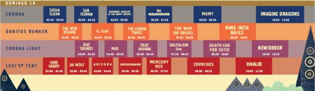 EDC México y Corona Capital están entre los mejores festivales del mundo. TV horarios cartel bandas y artistas Corona Capital Día 2 Noviembre 18 En el segundo y último día del evento todo comenzará a las 1400 horas donde las miradas las acaparan Image Dragons MGMT Nine Ich Nails. Ya salieron los horarios del Corona Capital 2018 y así quedaron por días.